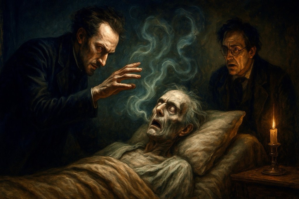 Edgar Allan Poe’s The Facts in the Case of M. Valdemar, first published in 1845, exemplifies his mastery of the macabre and the grotesque. This short story deftly intertwines scientific curiosity, mesmerism (hypnosis as we now know it), and the grim fascination with death to create a narrative that is as chilling as it is intellectually stimulating. The story’s detailed depiction of a man suspended between life and death under hypnosis challenges the boundaries of human experience and the natural order, compelling readers to confront their deepest fears and morbid fascinations.