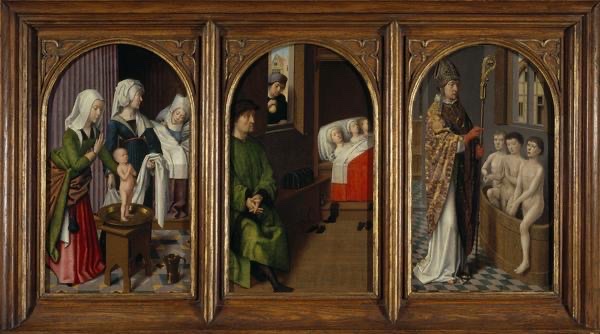 Now, to the good stuff: Gerard David’s Three Legends of Saint Nicholas is like the medieval equivalent of a Netflix miniseries, offering three bite-sized episodes from the life of Saint Nicholas, the original gift-giver, miracle-worker, and all-around holy overachiever. Let’s dive in.
