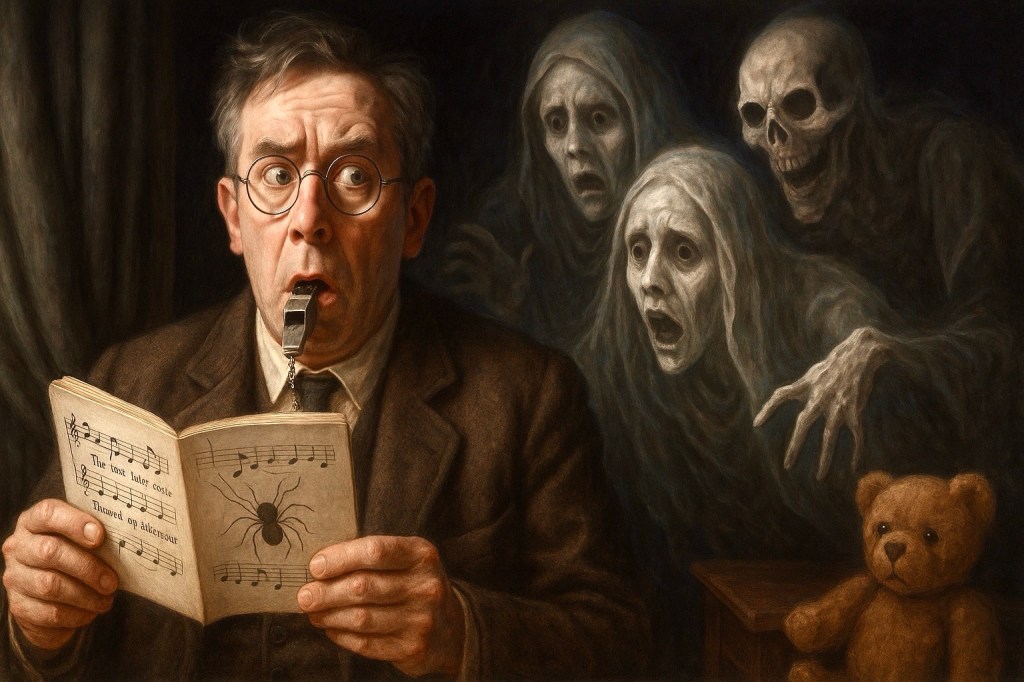 And don’t get me started on the Latin. Oh, Whistle brings us the soul-crushingly innocent phrase, ‘Quis est iste qui venit?’ which translates to ‘Who is this who is coming?’ Sounds harmless, right? But NO, in James’ world, it’s like asking, “Hey, can you summon an army of ancient, grumpy spirits with this whistle? Thanks!” It’s a regular Monday morning with a side of doom. The object isn’t the problem, it’s the vibe. The whistle isn’t just a whistle. It’s the modern equivalent of opening a Pandora’s box and going, “Hmm, should’ve read the fine print on that contract.”