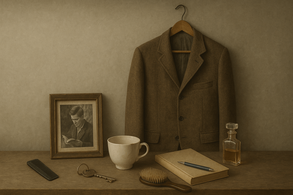 Because here’s the thing: people don’t really leave. Not completely. They become embedded in the furniture. They hide in teacups and scarves, in biro pens chewed at one end, in marginalia, in keys you’ve forgotten the lock for. They’re in the hairbrush with a single grey strand still coiled at the base. They’re in the umbrella you never returned. The old cassette tape with someone’s handwriting on it.