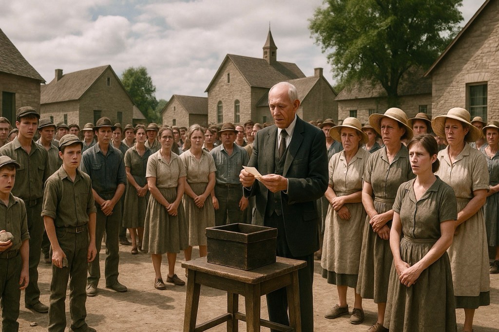This isn’t a story that creeps like fog, but a story that strikes like a thrown stone. Though Shirley Jackson’s The Lottery manages both. It begins with a sky of perfect summer blue, as though God Himself had painted it fresh for a village fête, and ends with Tessie Hutchinson screaming under a rain of stones thrown by her neighbours – even her children – as casually as one might toss breadcrumbs to ducks. It’s the kind of tale you sit back to read with tea, expecting strawberries and maypoles, and instead you find Golgotha in the village square.